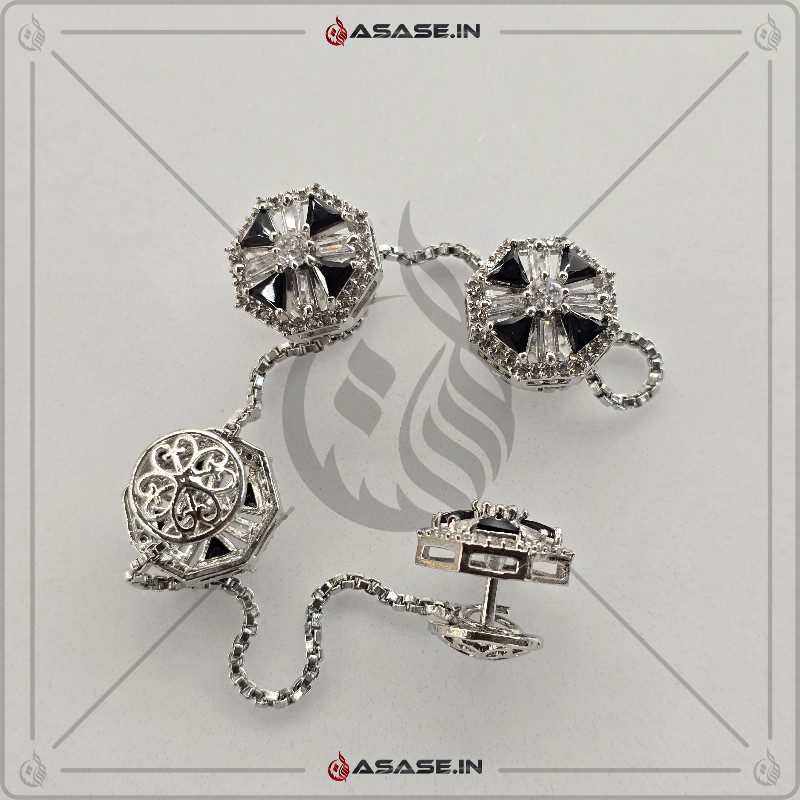 Asase Zircon Double Kaj Kurta Button for Men – Black – B02