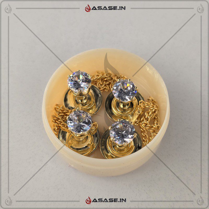 Asase Zircon Double Kaj Kurta Button for Men – Gold – S01