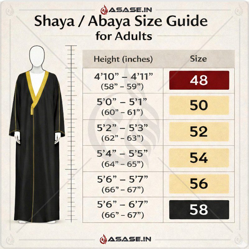 اس لباس کو پہننا اسلامی اقدار، حیا اور عرب ثقافت کی بھرپور عکاسی کرتا ہے۔ یہ صرف ایک لباس نہیں بلکہ اسلامی طرزِ زندگی اور روایت کی نمائندگی ہے۔ یہ ڈریس White، Cream اور Black رنگوں میں دستیاب ہے اور اس کے سائز 48 سے 58 تک موجود ہیں تاکہ ہر فرد کو بہترین فِٹ اور خوبصورت انداز مل سکے۔