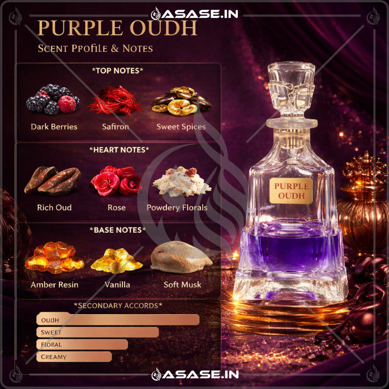 Purple Oud is perfect for those searching for premium oud perfume oil, long lasting oud attar, sweet floral oud fragrance and luxury oriental scents. Whether worn during the day or evening, it adapts beautifully to all seasons and occasions.